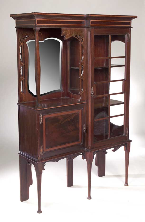 An Art Nouveau mahogany and inlaid display cabinet,