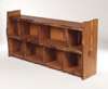 with three open shelves flanked by shaped uprights with exposed joints