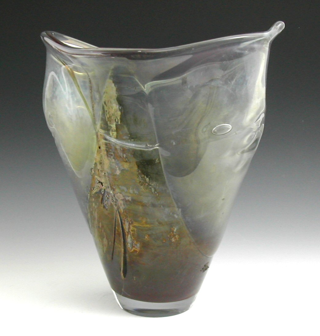 of organic tapering form with abstract inclusions and lustre finish, signed and dated 1979 and marked 'VAL 53'