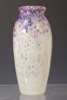 of slender tapering form, the mottled white body with purple, pink and green inclusions to the rim and with allover bubble inclusions