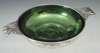 of circular form with beaten finish, and with pierced thistle handles, hallmarked London 1907, makers marks, with green glass liner (2)17cm across