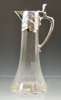the clear glass body of tapering ribbed form, with plated collar, cast with whiplash foliage, applied handle and hinged lid, stamped marks