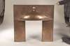 in the manner of George Walton, of rectangular outline and with beaten finish, the gently curved cowled hood with riveted cartouche surmount