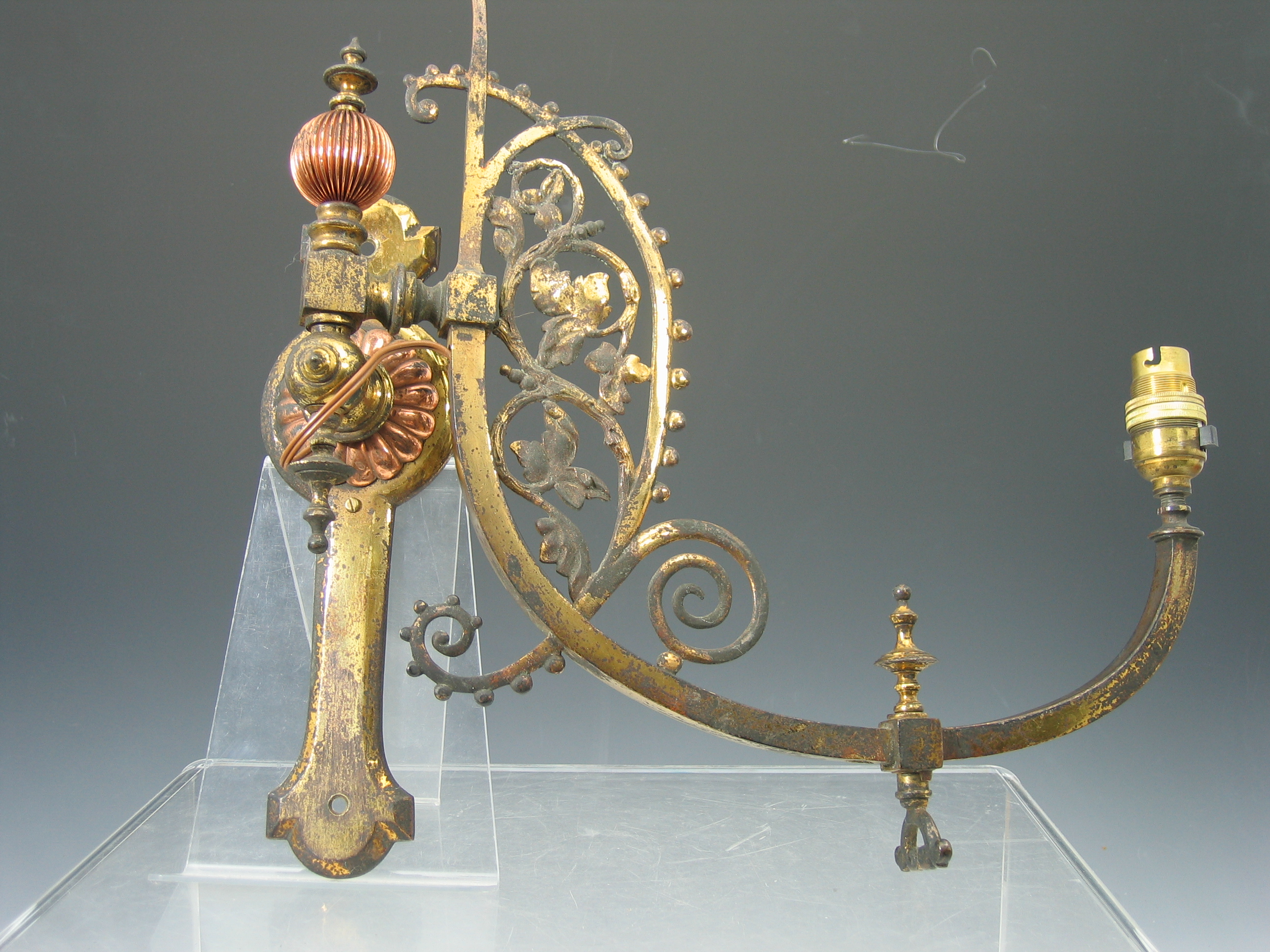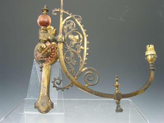 A pair of Aesthetic Movement brass and copper hinged wall lights,