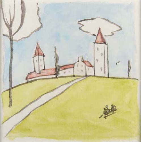 study for 'The Little Town of Never Weary' c.1917watercolour and pencil