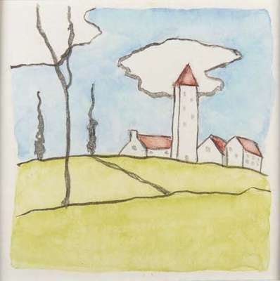study for 'The Little Town of Never Weary' c.1917watercolour and pencil