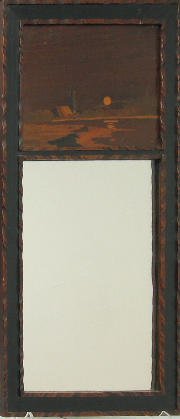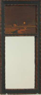 with inset marquetry panel, entitled 'Moonrise', bears paper label, 79cm x 25cm; and another similar Rowley galley mirror, 63cm x 32cm (2)