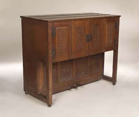 The piano was described as 'A Manxman Upright Pianoforte to a design by Mr CR Ashbee with double-hinged doors, unpolished'