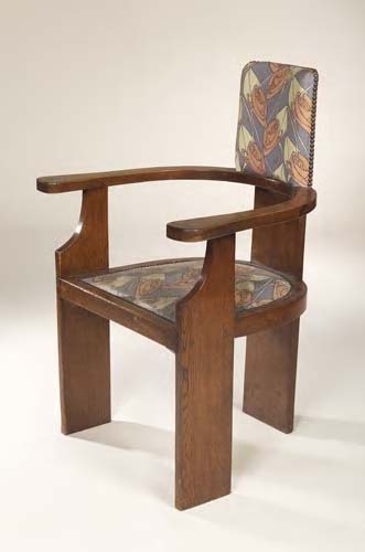 An Arts & Crafts oak framed open armchair,
