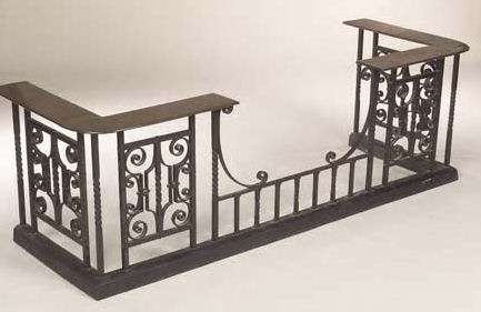 in the manner of Sir Robert Lorimer, of three-quarter form, with copper seat above a scrolling wrought iron frieze