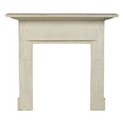 cast in the manner of C.F.A. Voysey, the rectangular mantel shelf with moulded edge above a surround cast with stylised plant forms, overpainted, cast marks Rd. No. 898865 and No 152, 141.5cm wide, 131.5cm high; and a Glasgow style cast iron and overpainted fender (2)