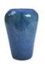 of tapering cylindrical form, the body with mottled blue and green inclusions and blue swirls, QA shape