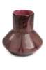 with cylindrical neck above squat ovoid body, with pulled decoration in pink, amethyst and green, bears torn paper label, GA shape