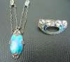 in the style of Jessie M. King, with oval turquoise enamel panel bordered by flowers and with chain having enamelled spacers, pendant drop lacking, stamped maker's mark; also a Murrle Bennett silver and enamel brooch, stamped marks (damages) (2)