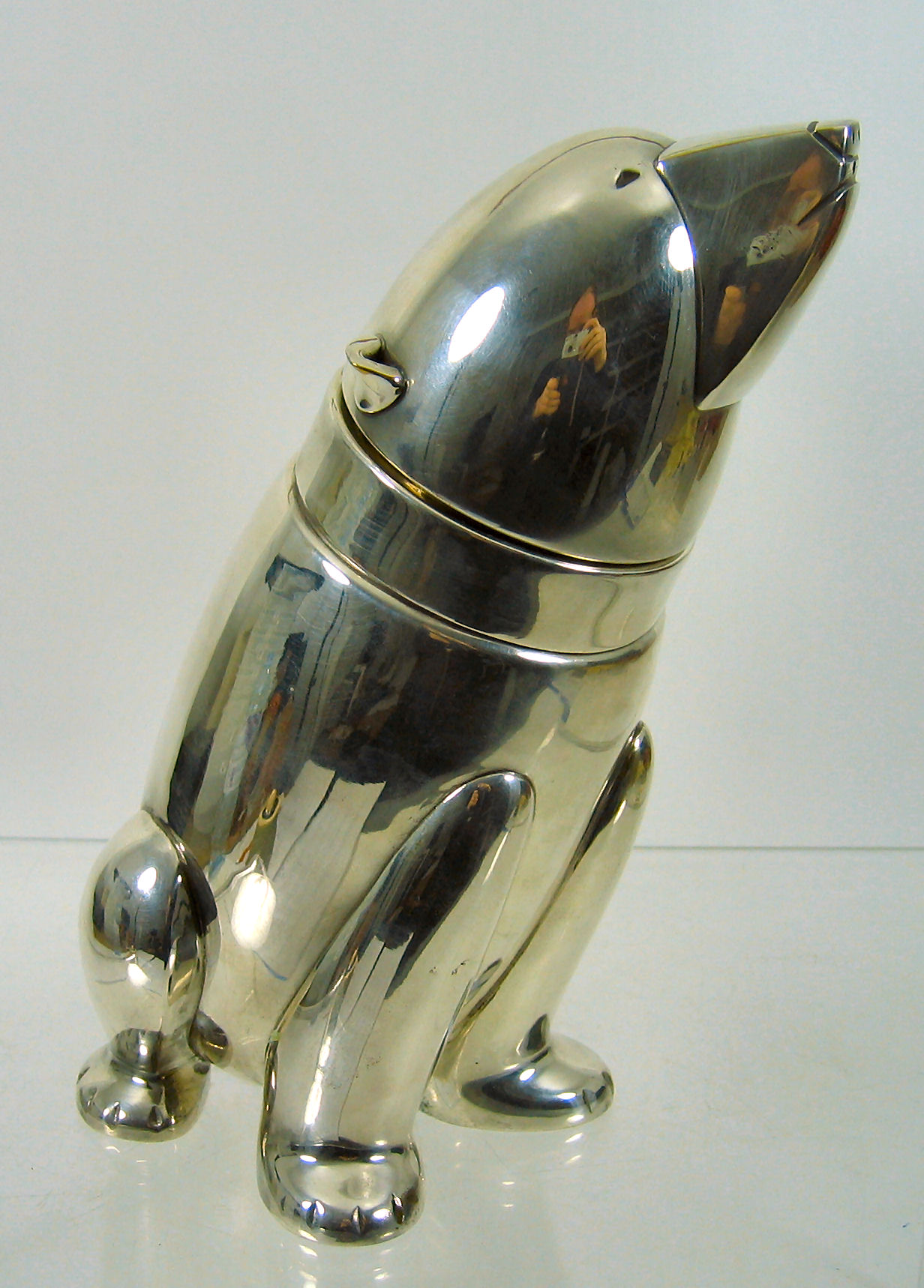 cast in the form of a polar bear, the removable head enclosing a strainer, unmarked