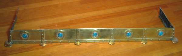 of rectilinear tapering form, decorated with panels of riveted straps centred by repousse-worked roundels with Ruskin plaques