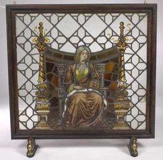 depicting a lady at leisure, seated on an elaborate throne with an ebonised and gilded frame with carved feet supports