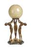 cast as three scantily clad girls, holding aloft a spherical glass shade and raised on a concave green marble plinth