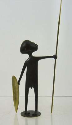 of a standing boy, holding a polished shield and spear, stamped makers marks
