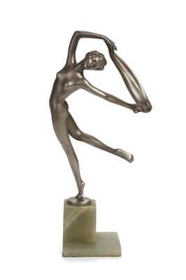 Silvered bronze, signed in the bronze, raised on a stepped onyx base