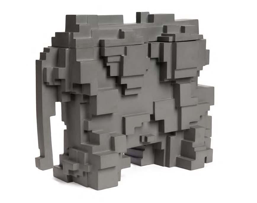 grey vinyl publicity figure, designed for Nairn Floors Ltd, 1972, of geometric form with removable lid enclosing a compartment containing publicity brochures, within original box (2)
