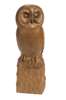Carved oak figure, modelled as a standing owl holding a mouse in its talon, on a rockwork base