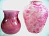 with flared neck above pink ovoid body, with swirling amethyst and aventurine inclusions, SA shape, 17.5cm high; together with a large Monart style glass vase, of ovoid form, with mottled pink body, 26cm high (2)