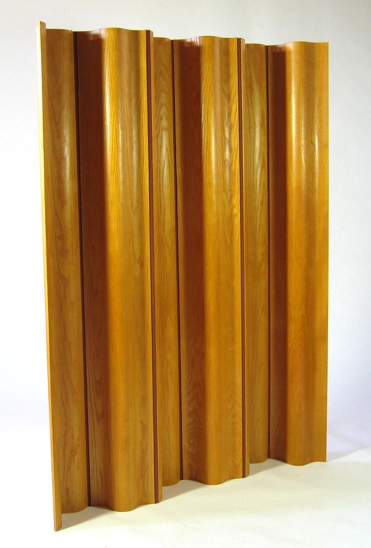 designed 1946 for Evans Products Co., Venice, California and later produced by Herman Miller, composed of six undulating folds linked by canvas hinges