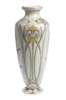 of tapering form, with everted rim, painted in colours with panels of flowering irises on a cream ground, printed mark, painted monogram and no. 178
