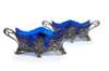 each with oval blue glass liners and twin handles, the frame cast with opposed Art Nouveau maidens and whiplash tendrils, stamped marks (2)