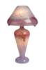A LARGE GLASS LAMP AND SHADE