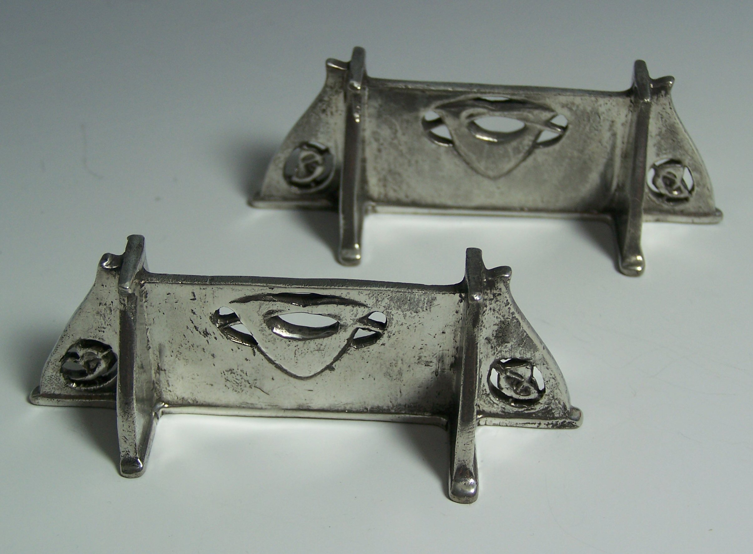 A PAIR OF LIBERTY & CO PEWTER KNIFE RESTS
