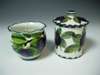 painted with purple plums (restored lid), painted and impressed marks, 11cm high; and a Wemyss posy vase, painted with purple plums, painted and impressed marks with retailers printed mark, 8cm high (2)