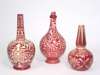 painted in ruby tones with floral sprays, painted marks 'Maw & Co., Jackfield', 24.5cm; a Maw & Co. lustre decorated bottle vase, painted with floral sprays, indistinct painted mark 'Maw & Co., 25cm high; and another similar bottle vase, unmarked, 19.5cm high (3)
