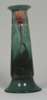 of cylindrical tapering form with everted rim, decorated in tube-line with stylised elongated flowering plants on a turquoise ground, impressed mark