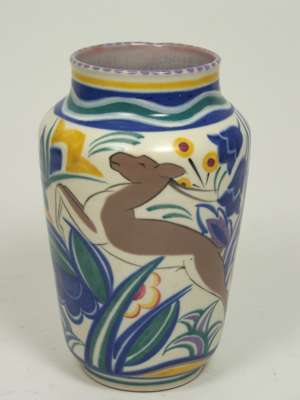 decorated with a leaping antelope amongst flowering foliage, impressed, incised and painted marks
