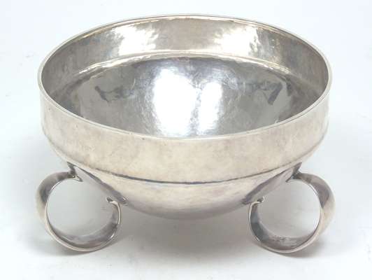 ARTS AND CRAFTS PLANISHED SILVER BOWL