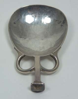 Birmingham 1907, with planished rounded triangular bowl and trifurcated handle with seal terminal