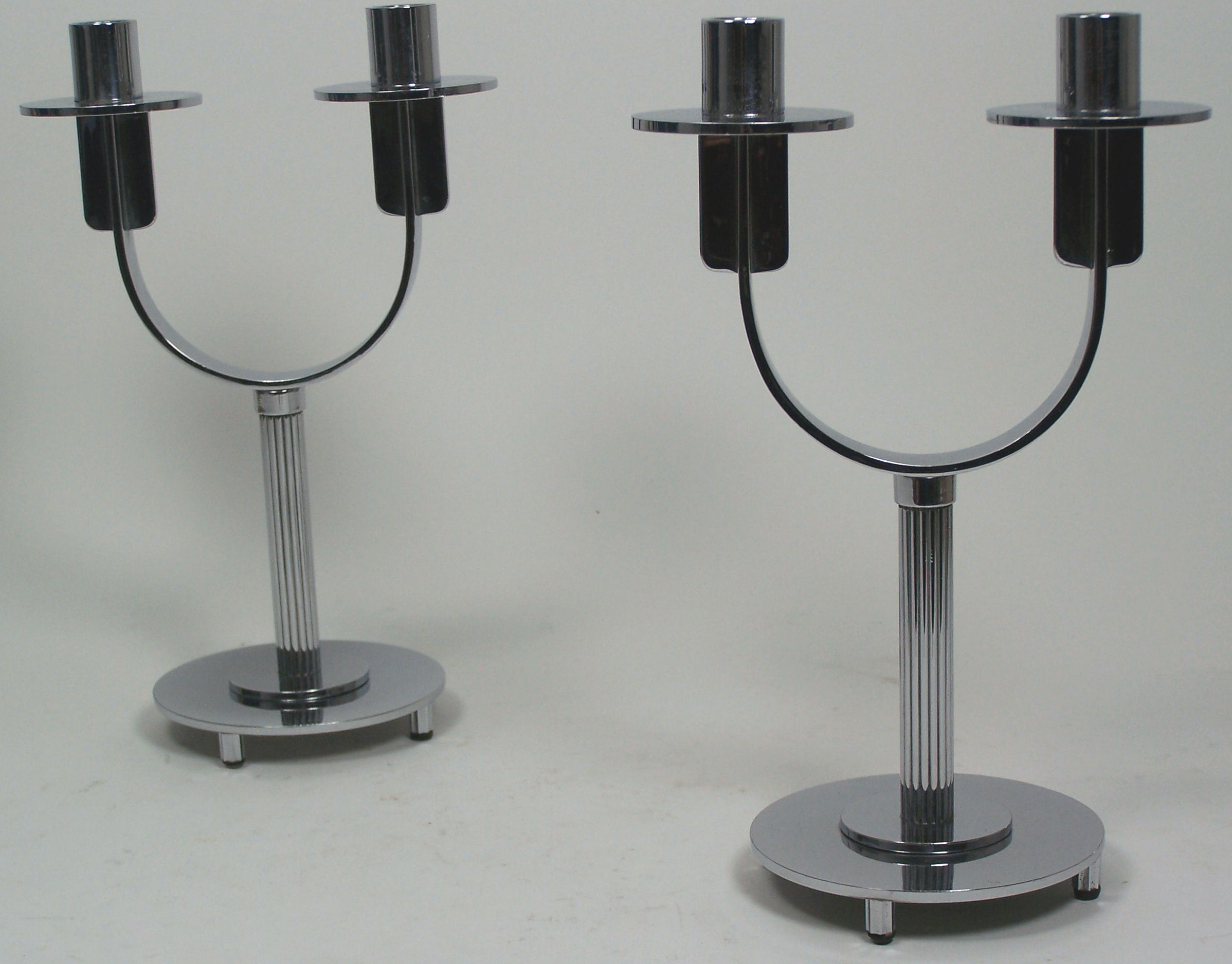 PAIR OF 1930S CHROMIUM PLATED CANDELABRAS