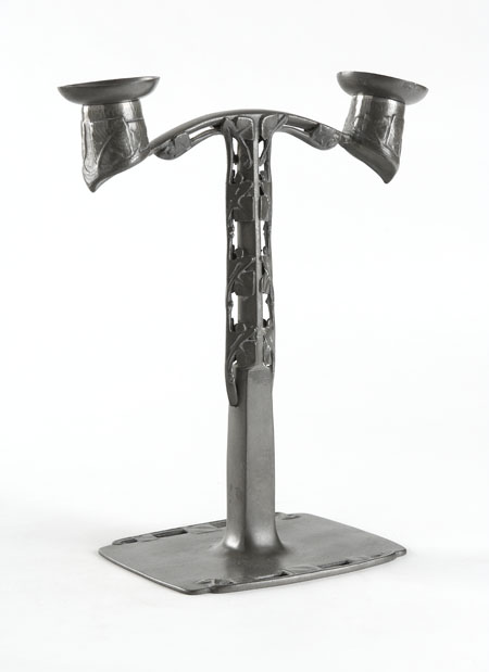'TUDRIC' PEWTER TWIN-BRANCH TABLE CANDELABRUM