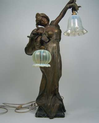 ART NOUVEAU PATINATED SPELTER TABLE LAMP