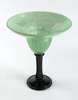 with bubble inclusions, the circular green glass bowl with broad rim, raised on a turned amethyst glass column and spreading base, stencil etched mark 'Schneider France'