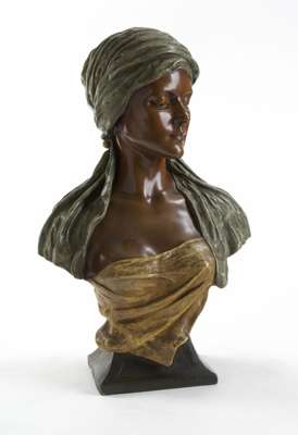 by D Rochella model number 1340, with green head scarf and yellow draped clothing, with impressed signature mark and pattern numbers