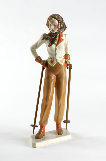 CERAMIC FIGURE OF A GIRL WITH SKIS