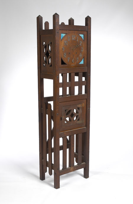 AMERICAN ARTS AND CRAFTS OAK STANDING CLOCK
