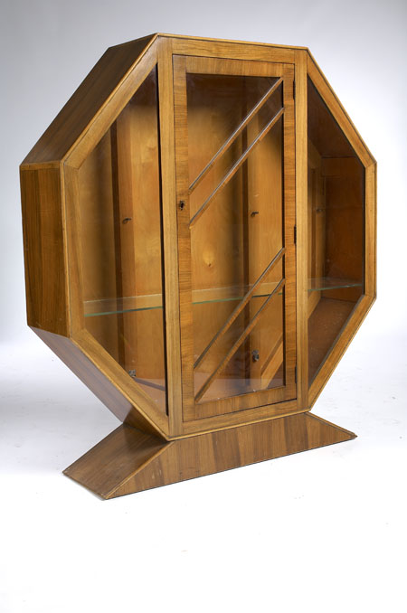 1930S WALNUT OCTAGONAL DISPLAY CABINET