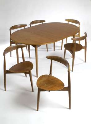 TEAK AND BEECH DINING TABLE AND SIX CHAIRS