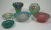 the mottled green body with amethyst, white and purple inclusions, 16cm high; a Monart flaring glass bowl, with green and aventurine inclusions, 15.5cm across; another Monart bowl, with mica inclusions, 13cm across; two Vasart glass bowls, 20.5cm and 19cm diameter; and a Monart style vase (6)