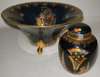 printed and painted in gilt and coloured enamels with a dancing girl, printed marks, pattern no. 3506, 26.5cm diameter; and a Carlton Ware ginger jar and cover, printed and painted in gilt and coloured enamels in the Egyptian Fan pattern, printed and painted marks, pattern no. 3696 (damage to lid) (2)