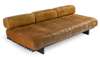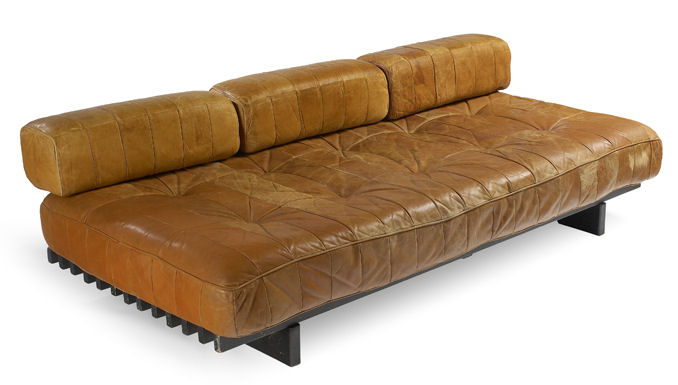 slatted ebonised frame with stitched leather cushions